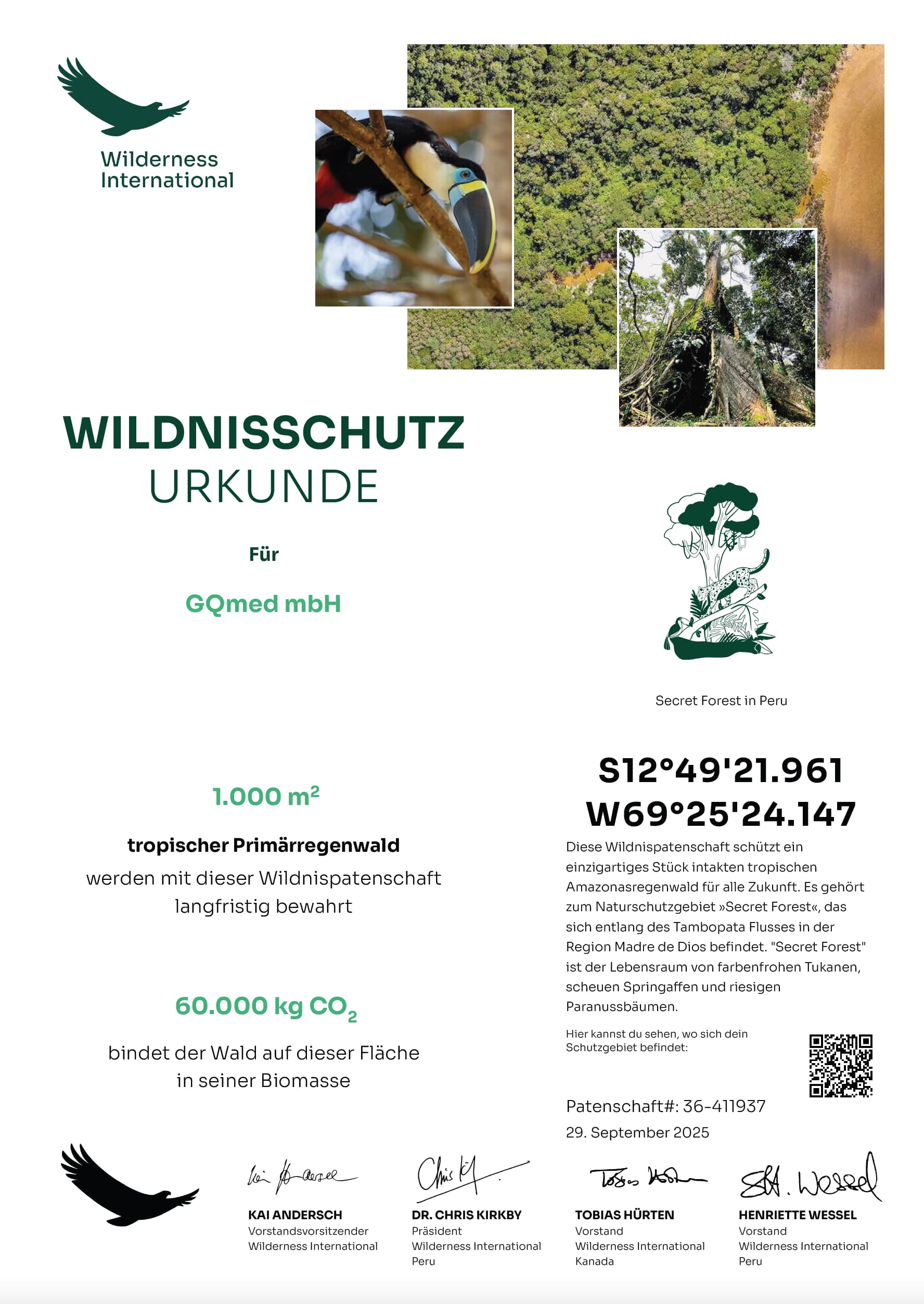 Mit unserer jährlichen Spende an Wilderness International schützen wir zudem Teile des artenreichsten Regenwaldes der Welt, dem Secret Forest in Peru. Wenn Sie mehr über dieses Projekt und die Arbeit von Wilderness International erfahren möchten, finden Sie hier weitere Informationen.